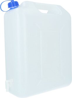 Carpoint kunststof waterkan met een draaidop en een uitloopkraan voor transport en opslag van water. Eenvoudig doseren met de uitloopkraan is een groot voordeel. Praktische handgreep. Inhoud 20 liter.