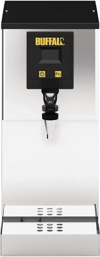 Deze in het Verenigd Koninkrijk vervaardigde heetwaterdispenser van Buffalo is de ideale manier om continu heet water klaar te hebben staan. De output van liefst 30L heet water per uur is goed voor zo'n 130 kopjes thee en met een snelle uitgifte van 10L kunt u ook een plotselinge piek in de vraag aan.Het digitale display op de voorzijde geeft de status van het apparaat weer, bovendien kunt u de temperatuur instellen tussen 70-96°C voor speciale soorten thee. Het display geeft daarnaast diagnostische info weer, zoals wanneer het apparaat ontkalkt dient te worden. Een topkwaliteit heetwaterdispenser van Britse makelij.