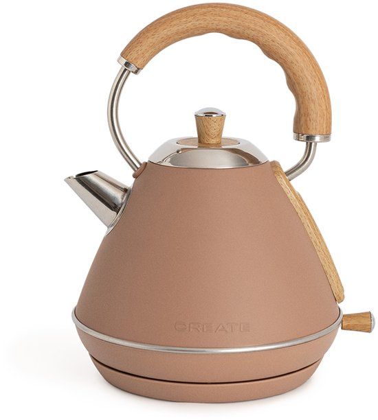 CREATE - Waterkoker Retro - 1200 Watt - 1 Liter - RVS - BPA vrij - Elektrisch - Mokka - Kettle Retro M - Waterkokers