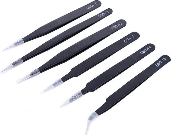 Set van 6 stuks metalen pincetten Pincet ESD RVS roestvaststaal anti-statisch / Verschillende maten / HaverCo Set van 6 Stuks Metalen Pincetten - Pincet ESD RVS Roestvaststaal Anti-statisch - Verschillende Maten - HaverCo De