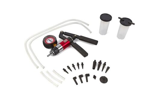 - Met deze handige vacuümpomp kunt u remsystemen van auto’s en motoren vacumeren, maar ook bijvoorbeeld magneetventielen en onder of overdruk kleppen testen.