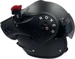 De ROOF Boxer V8 Matt Black is razend populair onder de custombike, chopper en nakedbike rijders en is daarbij ook de bekendste motorhelm onder de motorrijders. De Boxer V8 is te dragen als jet- of als integraalhelm. Daarnaast is deze unieke motorhelm met duivelse rode oortjes gemaakt van glasvezel. Een glasvezel helmschaal is licht van gewicht en ijzersterk en daarmee geniet je van een langere levensduur dan de gemiddelde motorhelm. De rode clipjes aan de zijkant zorgen ervoor dat het kinstuk niet zomaar open kan schieten. Druk de rode clipjes in en het kinstuk kan los worden geklikt zodat je hem volledig naar achter kan klappen. Het voordeel hiervan is dat je geen wind vangt. Het vizier is achter het kinstuk geplaatst zodat het vizier niet mee naar achter klapt wanneer je open rijdt met de helm.