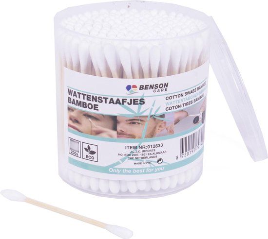 Met de Benson bamboe wattenstaafjes kies je voor een duurzaam en praktisch product dat perfect past in een milieubewuste levensstijl. Of je nu thuis bent of onderweg, deze wattenstaafjes bieden de ideale oplossing voor al je verzorgingsbehoeften.