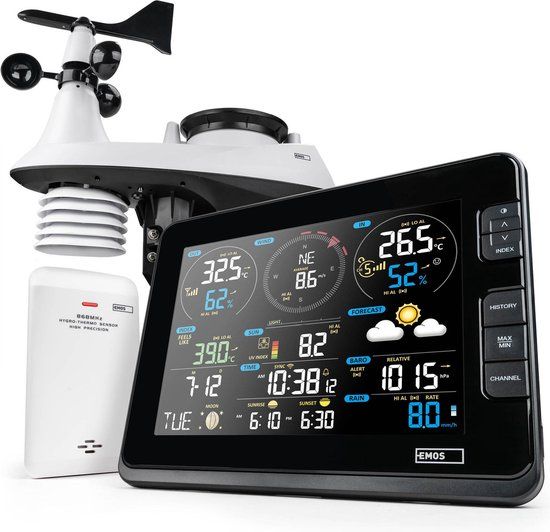 Bekijk productEmos Select EMOS Weerstation met Wifi - Draadloos Binnen- en Buitenweersysteem met Kleurendisplay - Weerstations