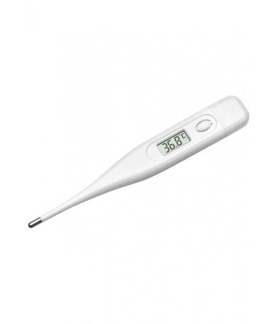 Zoek je een betrouwbare, snelle en eenvoudig te gebruiken voorhoofdthermometer? Dan ben je bij de TFA Elektronische koortsthermometer aan het juiste adres. Deze thermometer neemt snel en nauwkeurig je temperatuur tussen de +32 en +44 graden Celsius. De thermometer is gemakkelijk in gebruik dankzij het signaal dat het einde van de meting aangeeft en de geheugenfunctie die jouw laatstgemeten temperatuur bewaart voor toekomstige referentie. De TFA is vooral praktisch omdat ze niet alleen geschikt is voor voorhoofdmetingen, maar ook voor orale, rectale en onder de arm metingen, maar controleer in die gevallen de instructies in de handleiding voor correct gebruik. Een extra snelle geluidssignaal waarschuwt je als je koorts hebt voor extra gemoedsrust. Met de bijgeleverde kunststof hoes, behoudt je de thermometer in optimale staat door opslag op een droge plek. Als kers op de taart schakelt de TFA automatisch uit na 9 minuten, waardoor je de batterij spaart en de thermometer langer mee zal gaan. Mocht je dus een betrouwbare en veelzijdige thermometer zoeken, is de TFA een slimme keuze.