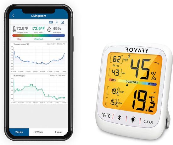 Bekijk productRovary RH10 Hygrometer met App - Digitale Luchtvochtigheidsmeter & Thermometer voor Binnen - Weerstations