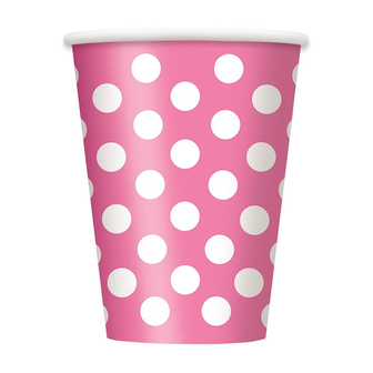 Roze Papieren Bekers Stippen 355ml - 6 Stuks