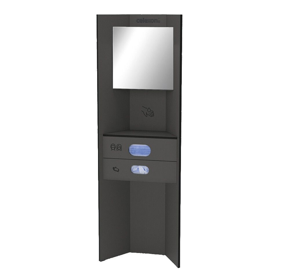 Met het "Hygiene Station" biedt celexon een modulaire mogelijkheid om zich in openbare ruimtes snel en eenvoudig uit te rusten met de essentiële beschermende materialen, zoals handschoenen, gezichtsmaskers of ontsmettingsmiddelen.