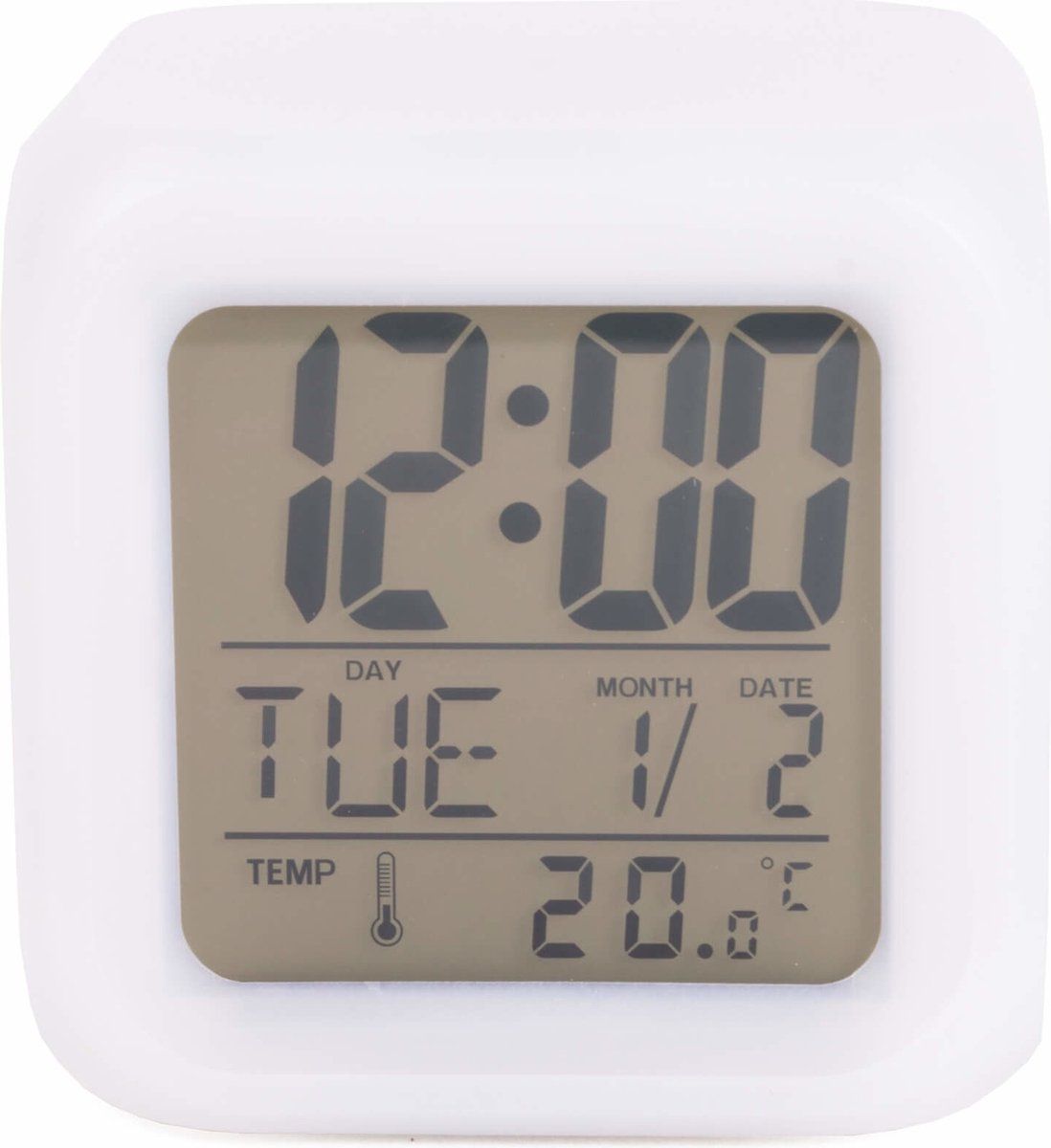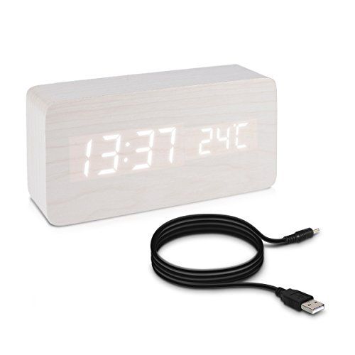 kwmobile digitale wekker in houtlook - Digitale weergave van tijd en temperatuur - Met geluidsactivering - Wit met witte LED verlichting