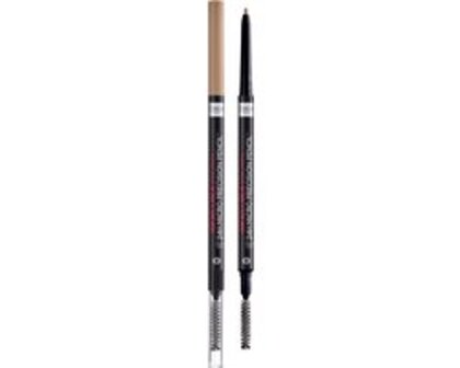 De L’Oréal Paris Brow Artist Skinny Definer 101 Blonde \nWenkbrauwen verven te moeilijk of te veel werk? Met het wenkbrauwpotlood L'Oréal Paris Brow Artist Skinny Definer 101 Blonde zijn de wenkbrauwen in een handomdraai gevuld en gedefinieerd voor een natuurlijk, vol effect. \n\n- Ultra dun mechanisch wenkbrauwpotlood waarmee ieder mooie wenkbrauwen kan tekenen met ultra fijne lijntjes voor een natuurlijk effect\n- Met wenkbrauwborsteltje om de wenkbrauwen door te kunnen kammen en te shapen\n- Het wenkbrauwpotlood heeft natuurlijke kleuren voor een perfecte kleurmatch en mooie wenkbrauwen.\n- Zachte formule voor een gemakkelijke applicatie.\n- Verkrijgbaar in drie kleuren: 101 blonde, 105 Brunette en 109 Ebony.\n\nProductbeschrijving \nDe Skinny Definer is een ultradun wenkbrauwpotlood van L’Oréal Paris met een punt van 1,5 mm. Hierdoor is het gemakkelijk om de wenkbrauwen te vormen en te vullen. Door de dunne punt kan je haartje voor haartje tekenen en zo je wenkbrauw opvullen.\n\nHet resultaat van de Brow Artist Skinny Definer 101 Blonde\nCreëer het effect van mooie, volle wenkbrauwen zonder kale plekjes met de Brow Artist Skinny Definer van L’Oréal Paris. Laat de wenkbrauwen voller lijken door de wenkbrauwen te tekenen in de wenselijke vorm, door ze te vullen en te stijlen met het wenkbrauwborsteltje.\n\nHoe gebruik je de Brow Artist Skinny Definer van L’Oréal Paris?\nStap 1: het mechanisch wenkbrauwpotlood draai je om het potlood te onthullen. Gebruik het dunne wenkbrauwpotlood om de wenkbrauwvorm in de gewenste vorm te omlijsten.\nStap 2: vul kale plekjes in de wenkbrauw op door haarfijne lijntjes te tekenen met het wenkbrauwpotlood om het effect van haar na te bootsen.\nStap 3:gebruik het borsteltje om de wenkbrauwen door te kammen voor een natuurlijk eindresultaat.\n\nIngrediënten:\nG2004406 - INGREDIËNTEN: HYDROGENATED SOYBEAN OIL ● SYNTHETIC JAPAN WAX ● STEARIC ACID ● SYNTHETIC FLUORPHLOGOPITE ● HYDROGENATED COCO-GLYCERIDES ● ZINC STEARATE ● POLYGLYCERYL-2 TRIISOSTEARATE ● MYRISTYL MYRISTATE ● POLYHYDROXYSTEARIC ACID ● TOCOPHEROL ● [+/- MAY CONTAIN CI 77491, CI 77492, CI 77499 / IRON OXIDES ● CI 77891 / TITANIUM DIOXIDE ● CI 77510 / FERRIC AMMONIUM FERROCYANIDE ● ]. (F.I.L. C239617/1). RAADPLEEG ALTIJD DE VERPAKKING VOOR DE MEEST ACTUELE INGREDIËNTENLIJST.