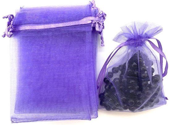 40x Paarse Organza Zakjes - Cadeauzakjes - 9 x 12 cm - Wenskaarten