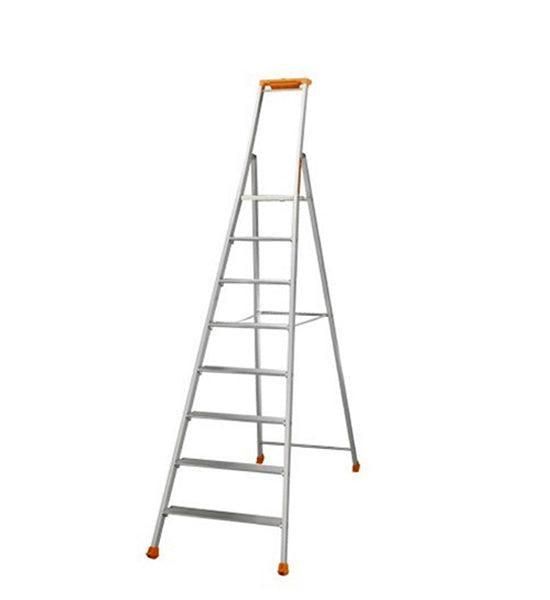 Professionele industrietrap met groot bordes. De kokerprofielen zorgen voor een robuuste constructie die toch handzaam en makkelijk mee te nemen is. Doordat deze profielen geanodiseerd zijn houdt u schone handen tijdens uw werkzaamheden. De trap is voorzien van 9 cm diepe treden welke door het kokerprofiel heen zijn gefelst. Het aluminium scharniergewricht is gemonteerd in een polyiamide behuizing in het achterraam. De trap is voorzien van grote, 50 mm, anti-slip voeten en een handige materiaalbak in een opvallende oranje kleur. Deze bak is ideaal voor handgereedschappen of andere materialen mede dankzij een afsluitbaar vak voor kleine onderdelen.