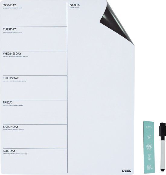 DESQ Weekplanner - 40 x 30 cm - Magnetisch - Droog uitwisbaar - Nederlands - Whiteboards