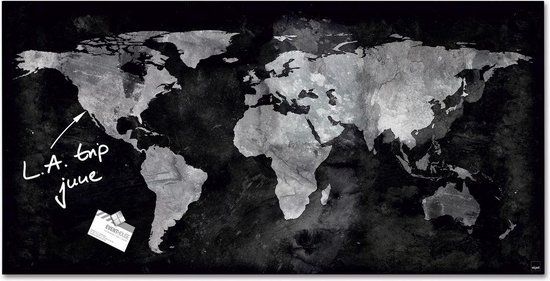 Sigel Artverum Glasbord - 91x46cm - Zwart Wereldkaart - Magnetisch