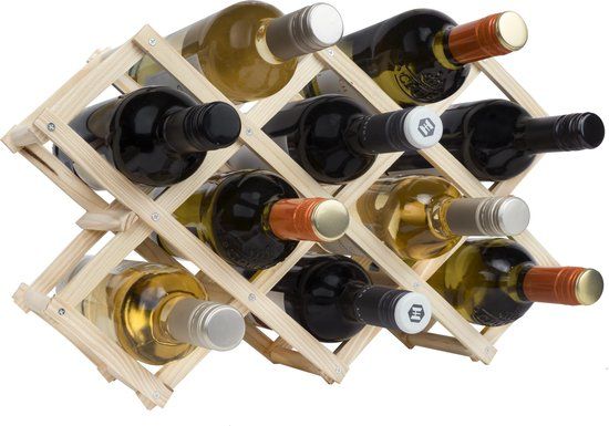QUVIO Wijnrek - Hout - Voor 10 flessen - Lichtbruin - Wijnrekken