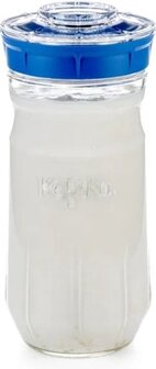 Kefirko Kefir maker is er in 848 ml. en 1400 ml inhoud. De kefirko is van een speciaal ontwikkeld glas waarmee je snel en eenvoudig thuis waterkefir, melkkefir, kombucha en gember bier kunt bereiden. Zeer hoogwaardige kwaliteit glas met kunststof deksel van levensmiddel kwaliteit.