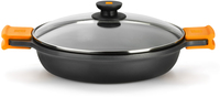 BRA Efficient A270532 - 5L Cast Aluminum Round Casserole Baking Dish with Lid - Black/Orange