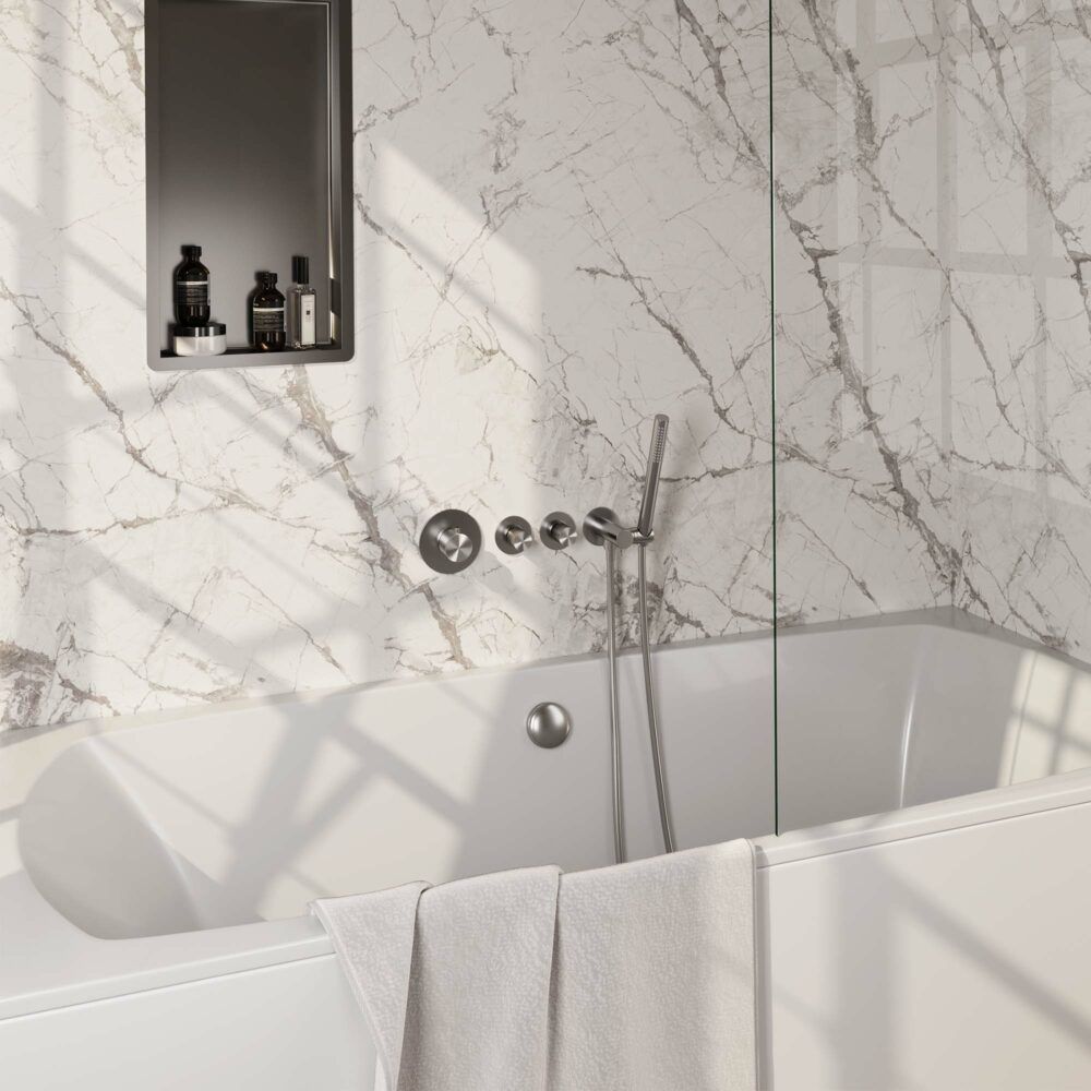 Als je op zoek bent naar een stijlvolle upgrade voor je badkamer, dan is de Brauer Brushed Carving inbouw badkraan met staafhanddouche in nikkel zeker het overwegen waard. Deze verfijnde badkraan, geïntroduceerd in 2022, combineert functionaliteit met esthetiek. Gemaakt van duurzaam messing, dit materiaal is niet alleen bestand tegen watercorrosie, maar geeft de kraan ook een aangename, zware kwaliteit. Het inbouwontwerp zorgt voor een naadloze integratie in je badkamer, terwijl de toevoeging van een staafhanddouche zorgt voor extra gemak bij baden of douchen. De kraan heeft een opvallende geborstelde nikkel afwerking, die een moderne en toch tijdloze uitstraling geeft aan je badkamer. Met de Brauer Brushed Carving maak je een bewuste keuze voor zowel design als bruikbaarheid.