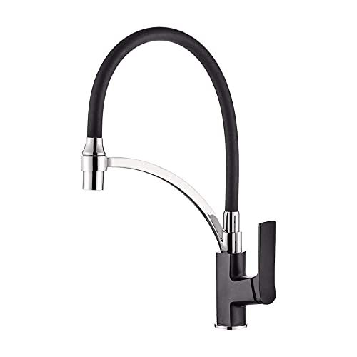 Ibergrif M14004B-2 Keukenkraan, 360° Draaibaar Keukenkraan met Flexibele Vervormbare Siliconen Slang, Eengreepsmengkraan met Uittrekbare, Zwart