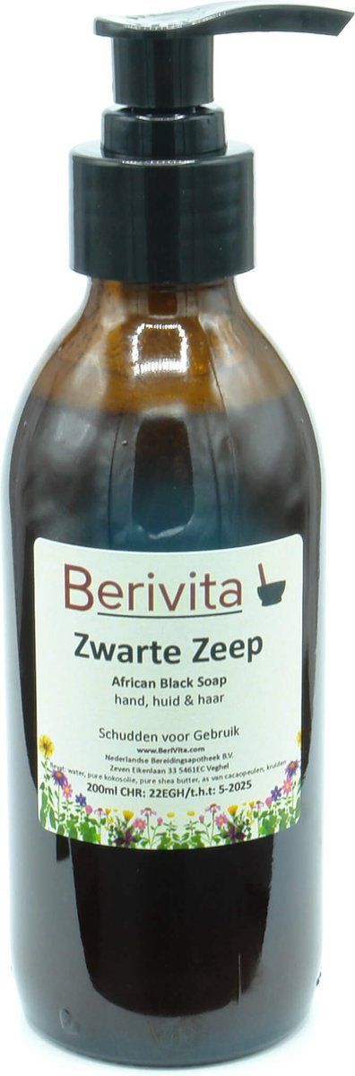 Berivita Afrikaanse Zwarte Zeep 200ml Pompfles Glas - African Black Soap