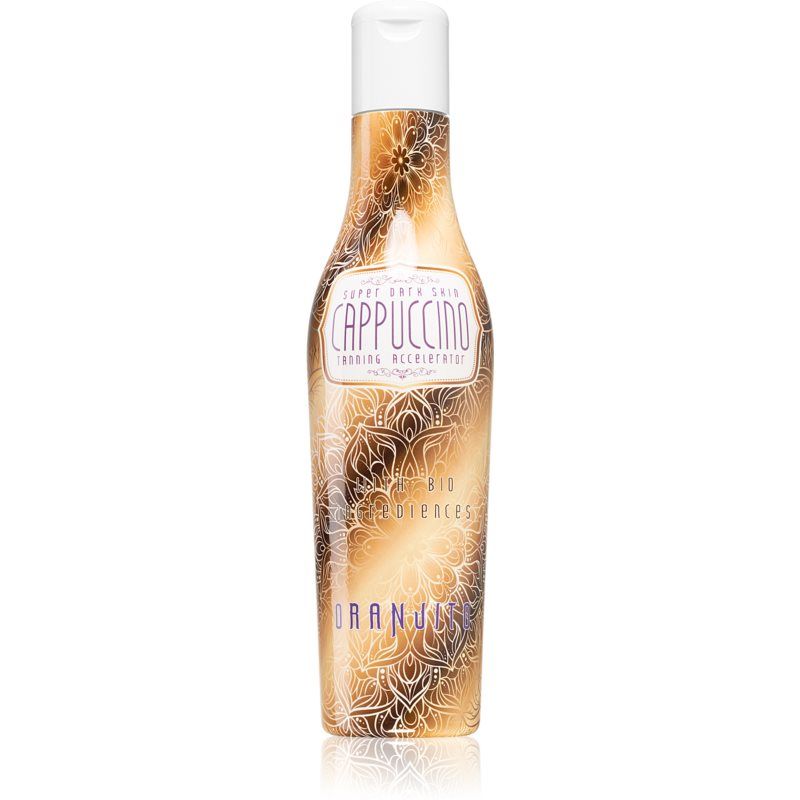 Oranjito Super Dark Skin Cappuccino, 200 ml, Zonnebankproducten voor Vrouwen , Het zonnebrandmiddel voor het solarium Oranjito Super Dark Skin Cappuccino zal je helpen een perfecte bruining te realiseren, terwijl het aan je huid de noodzakelijke voeding geeft. Kenmerken: verdiept de intensiteit van de bruining verlengt de gebruinde uitstraling gemakkelijk uit te smeren en absorbeert snel versnelt de bruining van de huid beschermt niet tegen zonnestraling Hoe te gebruiken: Voordat je in het solarium gaat zonnebaden, brengt je het preparaat gelijkmatig aan op het lichaam en het gezicht en masseert je het lichtjes in.