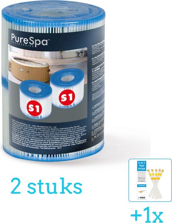 Intex Filter Cartridge S1 voor Opblaas Spa Jacuzzi (2 stuks) + Teststrips - Zwembad- en spafilters