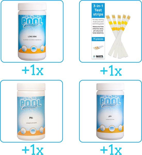 Zwembad Onderhoudsset - Startersset - Chloor, Teststrips, PH-min & PH-plus - 4-delig - Zwembadreinigers en -chemicaliën