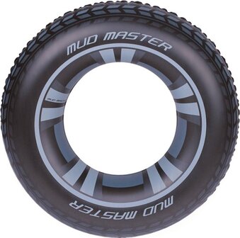 Supergrote zwemring in de vorm van een autoband. Leeftijd: 10+. Afmeting: Ø 80 cm.