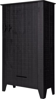 WOOOD Gijs Boerenkast - Zwart - 142x85x38cm - Zwenkwielen